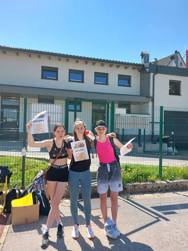 Učenci 8. in 9. razreda pa so se preizkusili v metu krogle, skoku v daljavo ter teku na 60 in 600m. Kljub toplemu vremenu in sončni pripeki so pokazali zelo veliko želje po dobrem rezultatu, za kar jim čestitamo.