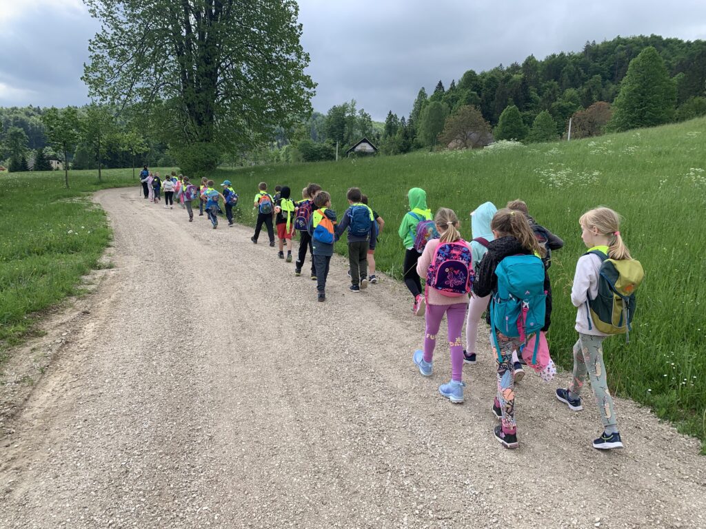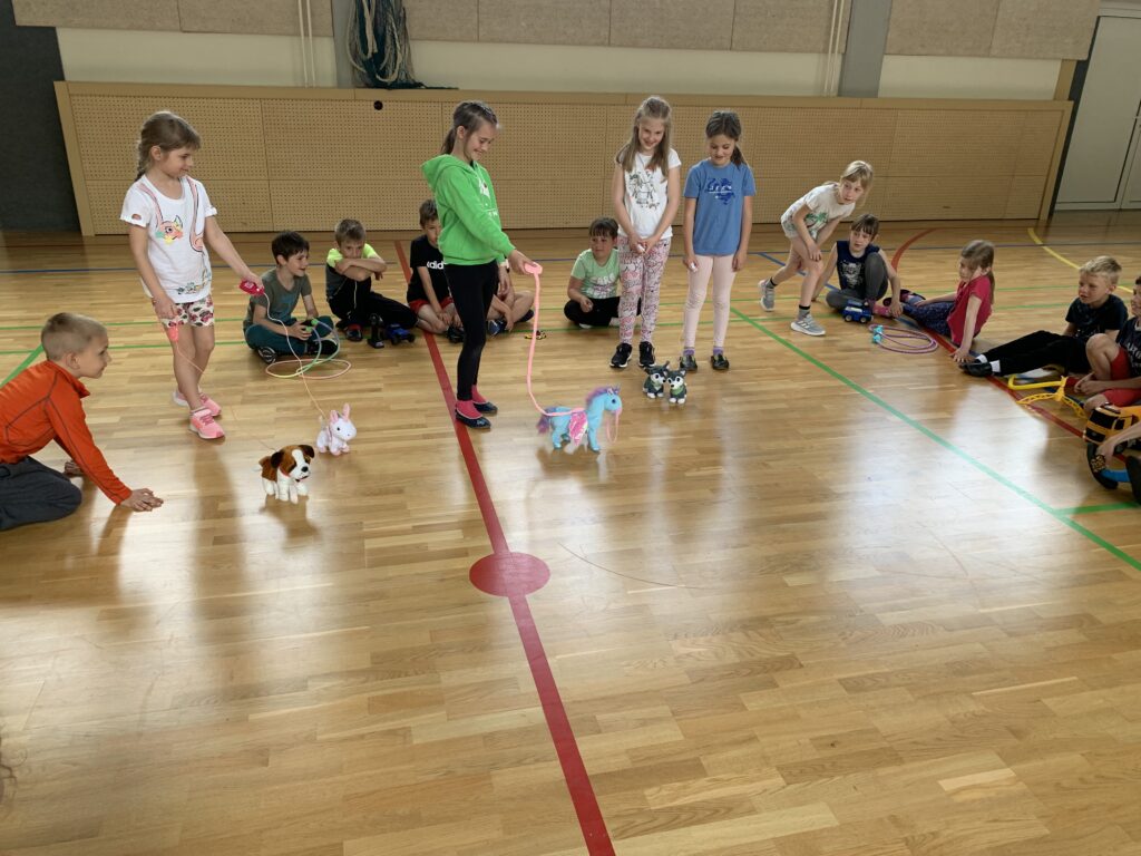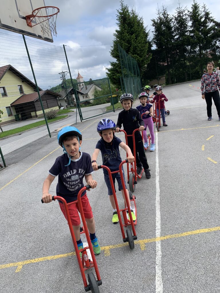 Po malici so odšli na orientacijski pohod do Hladnečka v Lomeh. Ko smo se vrnili v šolo, smo se odpravili v telovadnico. Otroci so se igrali z gibljivimi igračami. Od doma so prinesli kolebnice, vozila na baterije, živali na baterije, raketo idr. Zelo smo se zabavali in nasmejali.