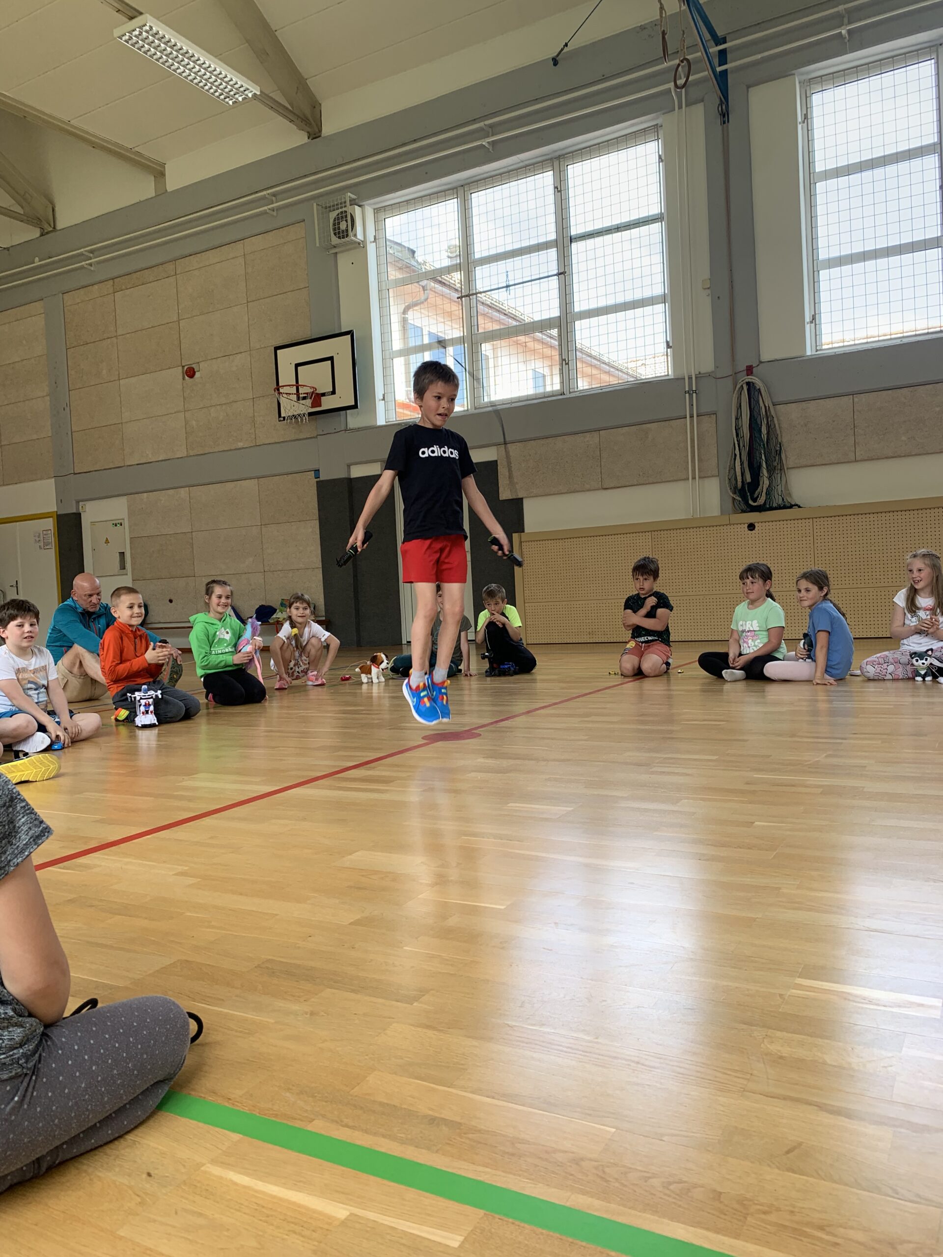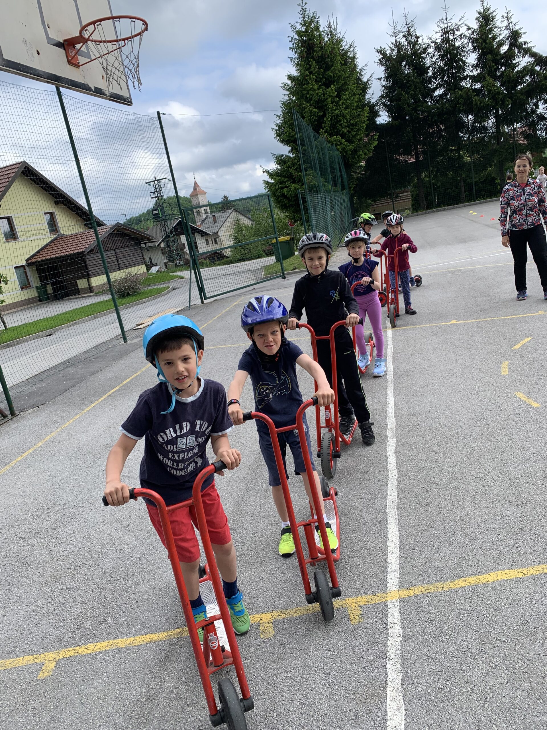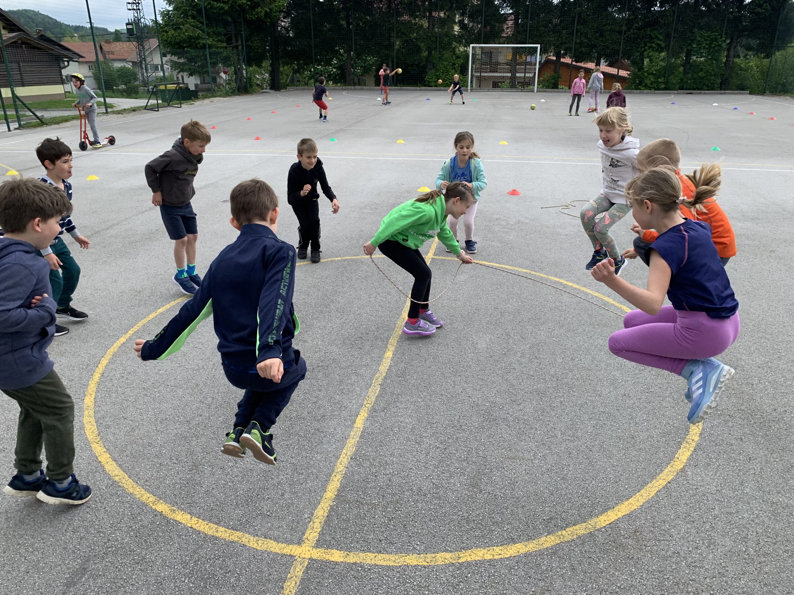 V telovadnici so igrali med dvema ognjema. Na igrišču so se vozili s skirojem, skakali s kolebnicami in se igrali z žogami.
