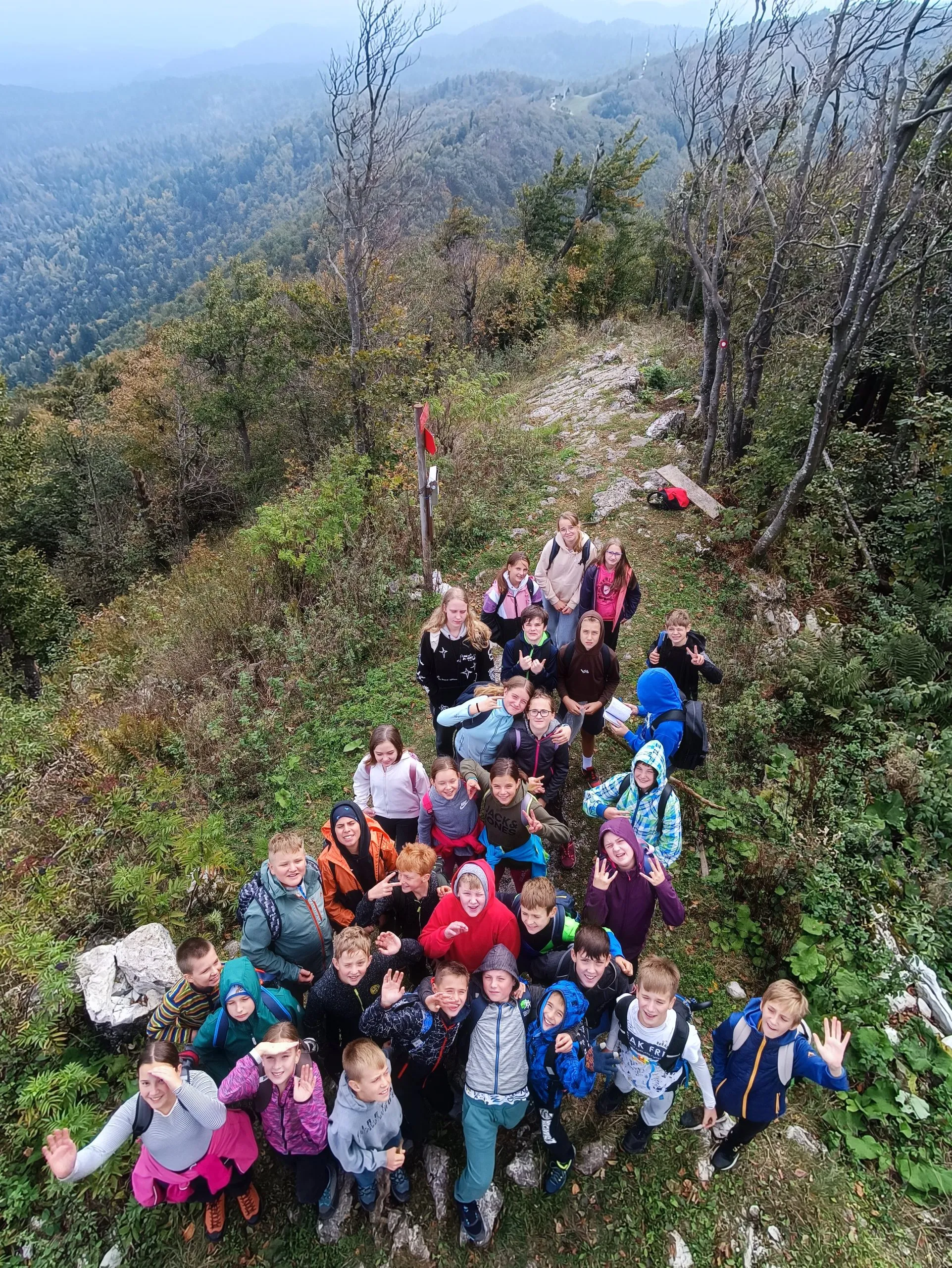 V torek, 1. oktobra 2024, smo se s šestimi in sedmimi razredi odpravili na pohod po sredogorju – na Javornik. Za spremembo smo izbrali za domačine manj poznan pristop iz Cola nad Ajdovščino. Pot nas je vodila po neokrnjeni naravi vse do razglednega stolpa na Javorniku, kamor smo prispeli v zglednem času. Po malici je sledil kar sestop do šole preko Šajsne ravni. Utrujeni, a zadovoljni smo sklenili lepo preživeto dopoldne v naravi.