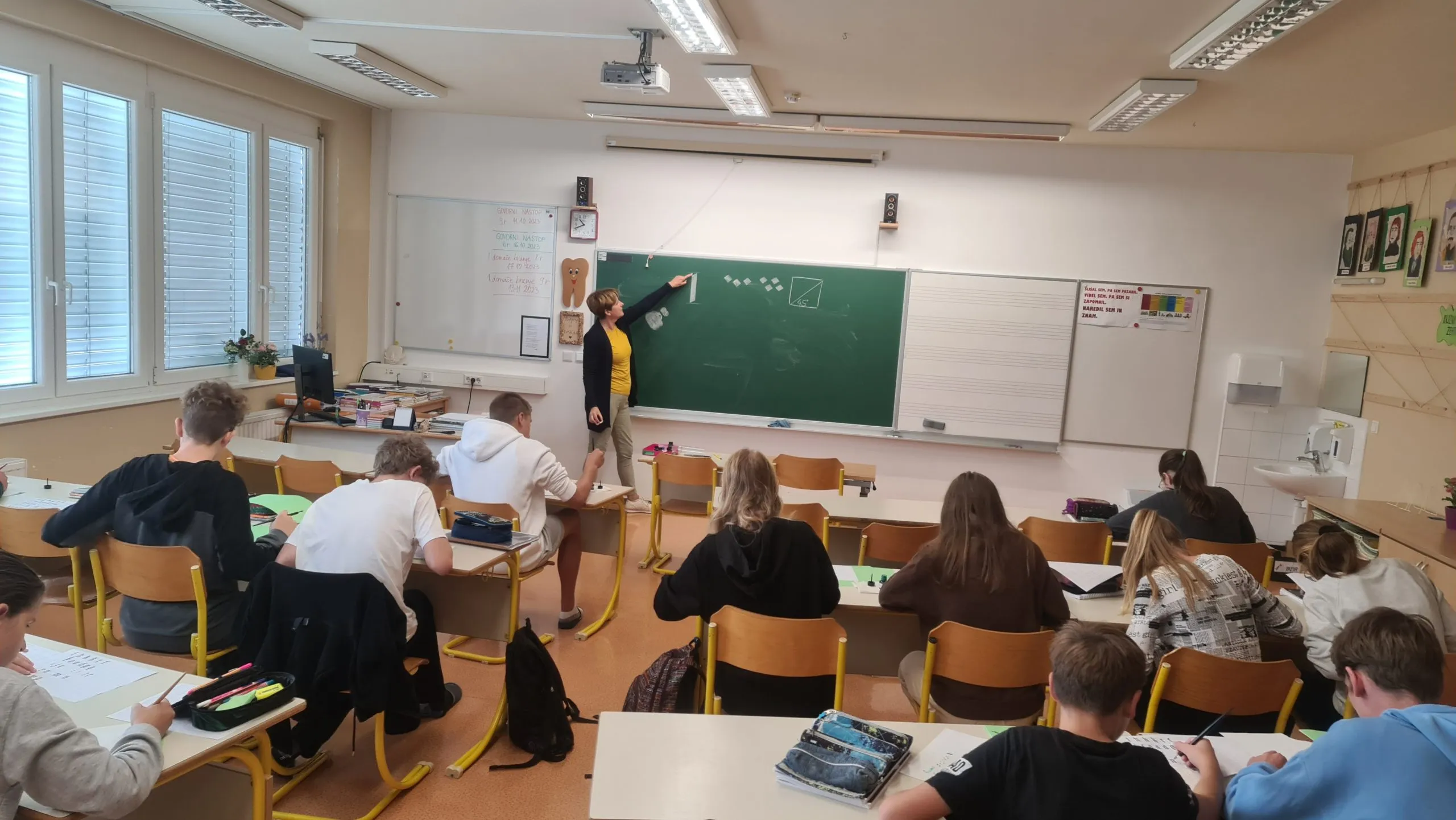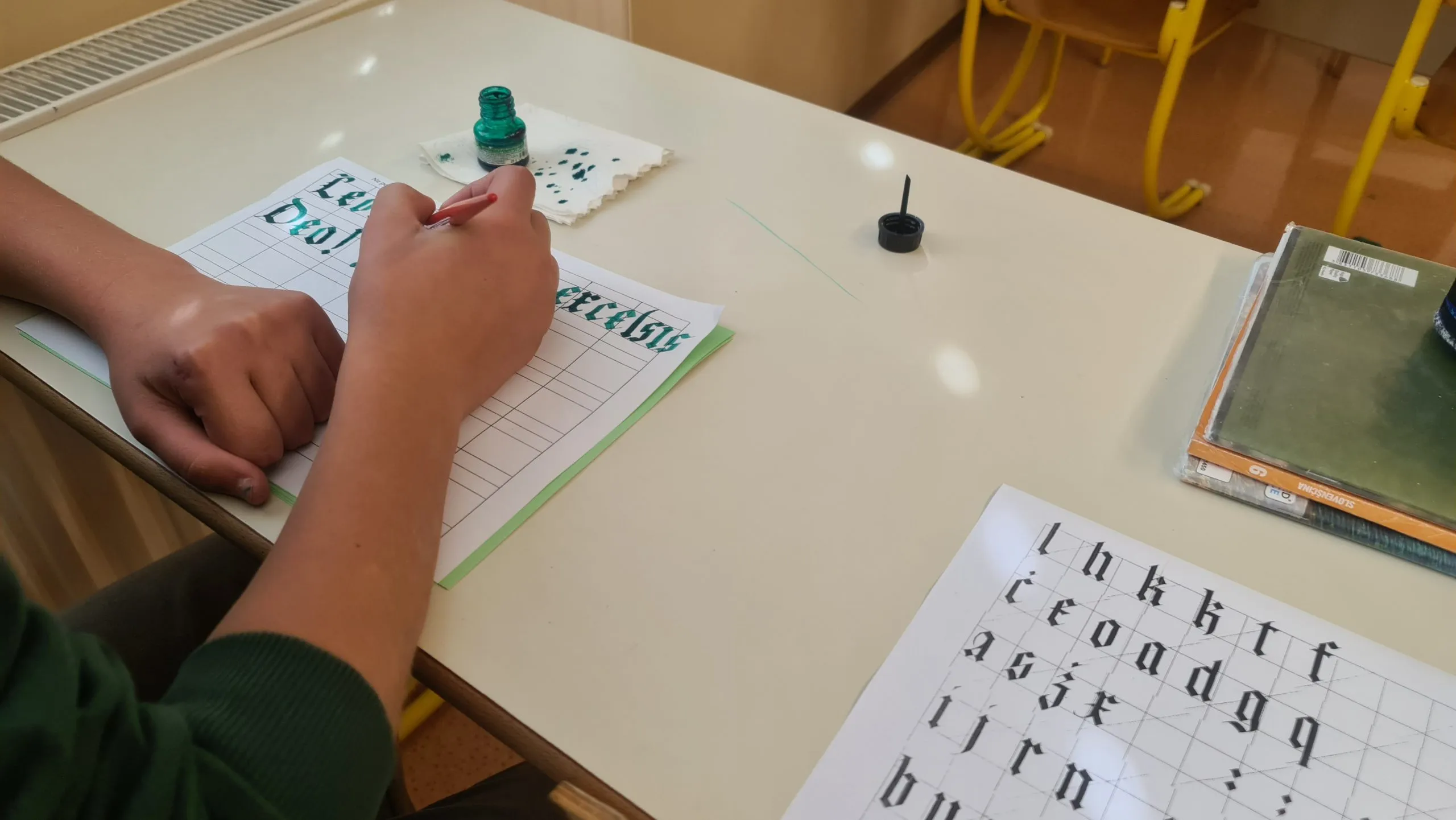 Kar nekaj devetošolcev se je med osnovnošolskim izobraževanjem že srečalo s kaligrafijo, zato nekaterim držanje pisala in pisanje umetelnih črk ni predstavljalo večjega izziva. Spet drugi so morali zavihati rokave, da so lahko napisali nekaj najlažjih črk (npr. i, r, n). Spretnejši so napisali tudi kakšno besedo ali svoje ime. Ob koncu je učiteljica vse učence prijazno povabila h krožku in se zahvalila za možnost, da je smela predstaviti tudi ta del umetnosti.