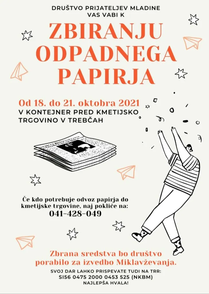 Na šoli se pridružimo akciji DMP Črni Vrh. Zbiranje starega papirja bo potekalo od 18. do 21 oktobra 2021.