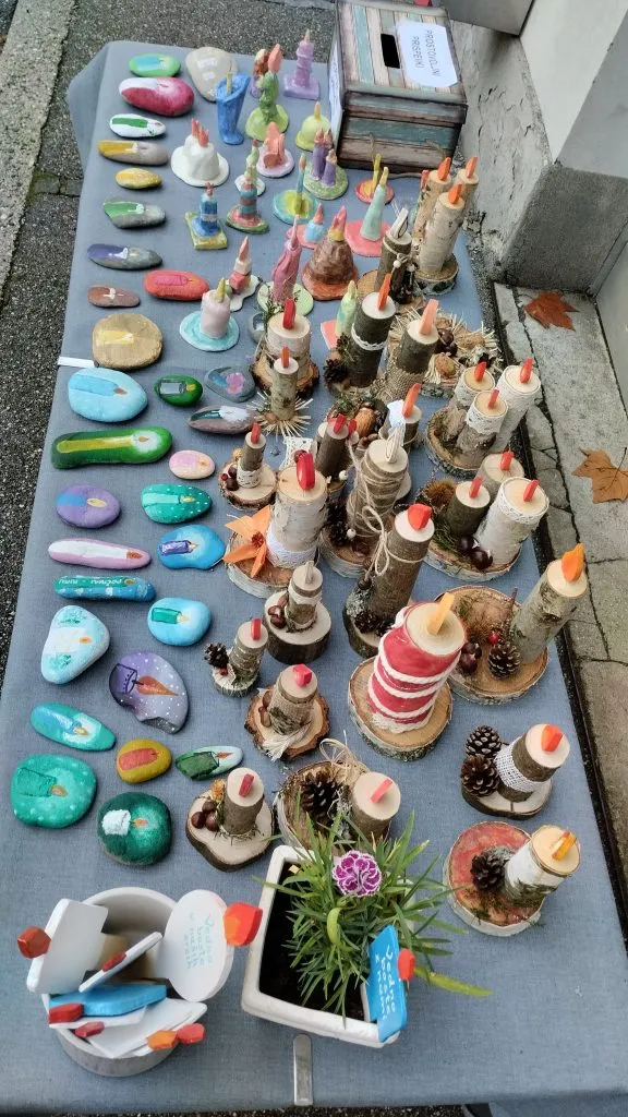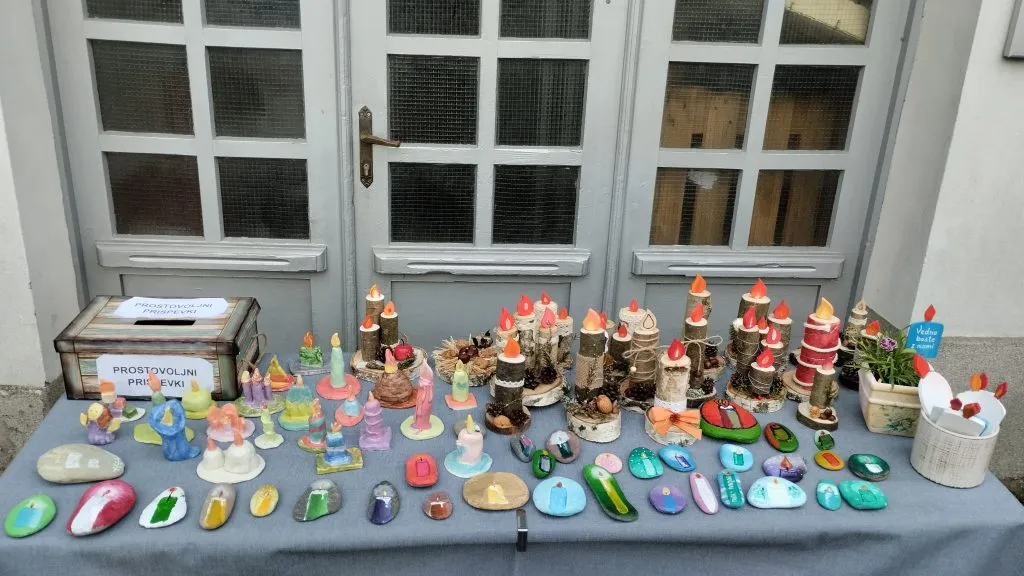 Predzadnji konec tedna v oktobru smo že zjutraj zaskrbljeno gledali v nebo in preštevali oblake, ki so se norčevali iz nas. V soboto in nedeljo dopoldne smo namreč nameravali prodajati nagrobne aranžmaje, ki so jih v tednu pred tem izdelali učenci osmega in devetega razreda. In prodaja v dežju bi pač padla v vodo – dobesedno. Ampak nebo je bilo na naši strani in je poskrbelo, da smo bili na suhem ravno v času, ko smo na črnovrški plac postavili stojnico s čudovitimi ročnimi izdelki. Prodaja je stekla kot za šalo, obiskovalci so z veseljem menjali lesene in keramične sveče ter poslikane kamenčke za prostovoljne prispevke. Teh se je nabralo za 913,06 evrov.