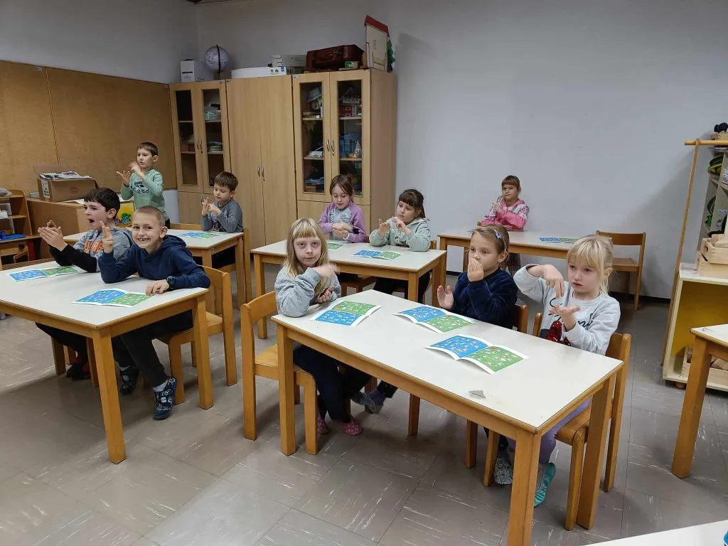 Otroci so zbrano prisluhnili zgodbi in z navdušenjem sledili pripovedi. Po predstavitvi so imeli kar nekaj vprašanj za gostji in z veseljem so se naučili nekaj kretenj. Kretnje je pomagala učiti učenka prvega razreda, Sofija Pivk, ki se v družinskem krogu srečuje s komunikacijo preko znakovnega jezika.