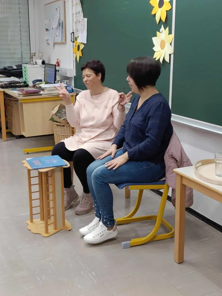 Hvala obema gostjama in se vidimo decembra, ko se bodo učenci prvega razreda poskusili naučiti pripovedovati pesem v znakovnem jeziku.