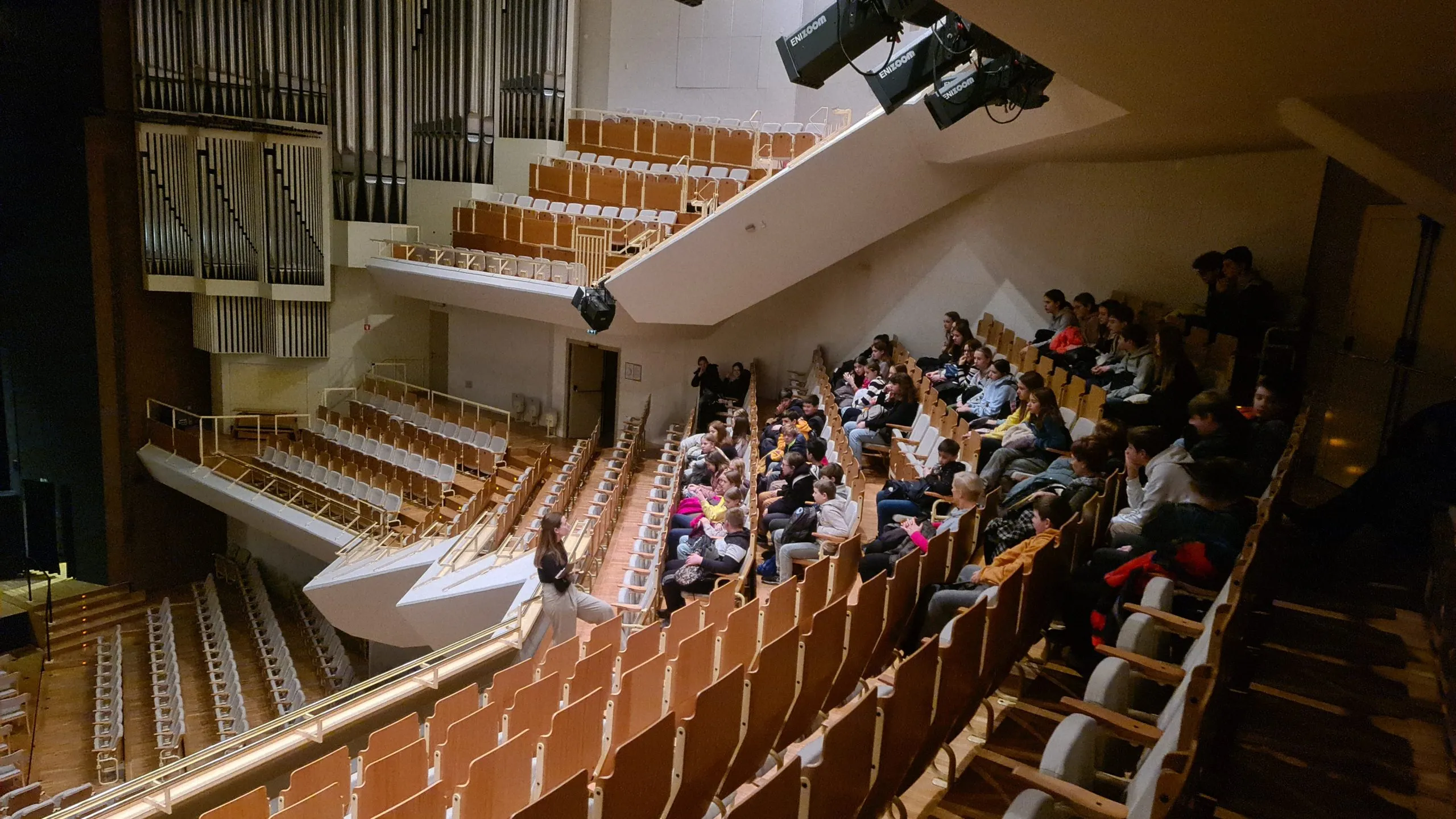 Četrtkovo dopoldne smo pred ogledom predstave izkoristili še za ogled hrama slovenske kulture. Ugotovili smo, da je Cankarjev dom ogromen, pa čeprav ne izgleda. Izvedeli, da v njem hranijo posmrtno masko pisatelja Ivana Cankarja, v kateri je med odtiskovanjem ostal en njegov brk. Ter slišali anekdoto o Lucianu Pavarottiju, slavnem opernem pevcu. Ta se je namreč v Gallusovo dvorano pripeljal z vozičkom, saj se je bal, da se bo zaradi številnih hodnikov in stopnic upehal pred samim nastopom in ga zato ne bo mogel uspešno izpeljati.