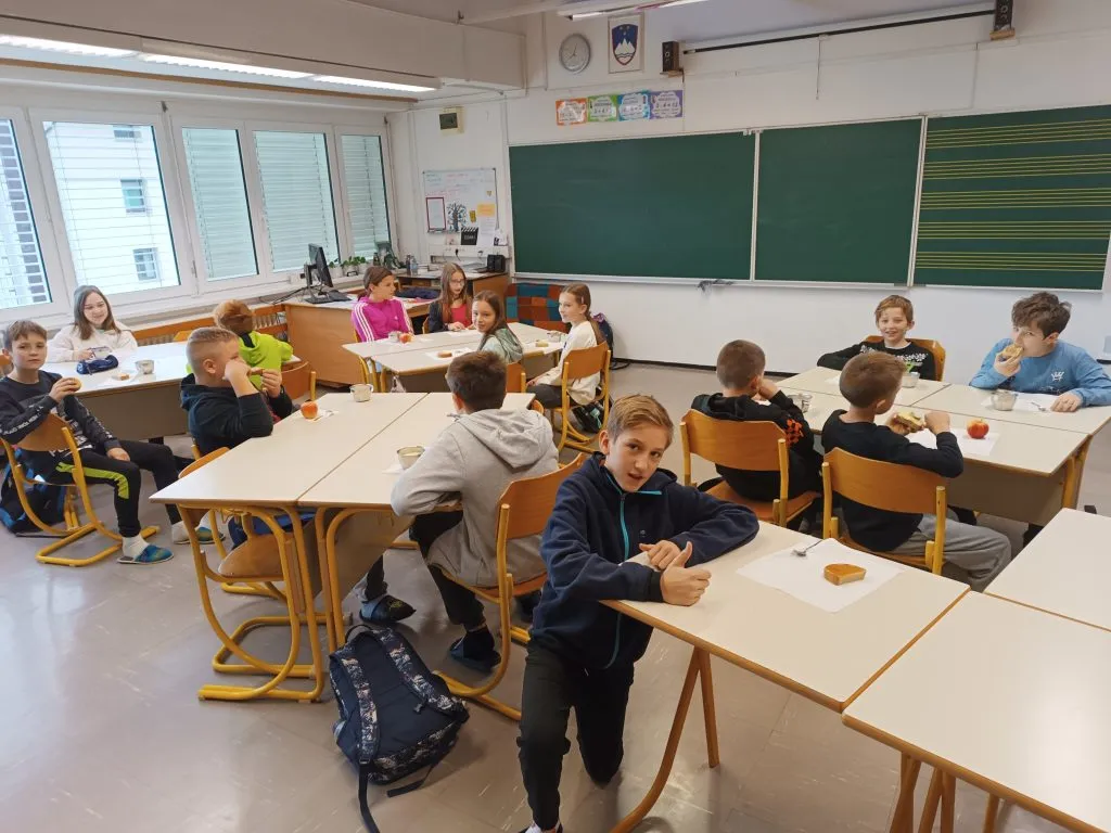 Zajtrk je obrok, ki doma povezuje družino, v šolskem okolju pa lahko povezuje učence različnih starosti. Prvošolci in drugošolci so se pri pripravi na tradicionalni slovenski zajtrk združili že v sredo in si skupaj ogledali posnetke Ribiča Pepeta, ki predstavi sestavo in tradicionalne sestavine zajtrka.