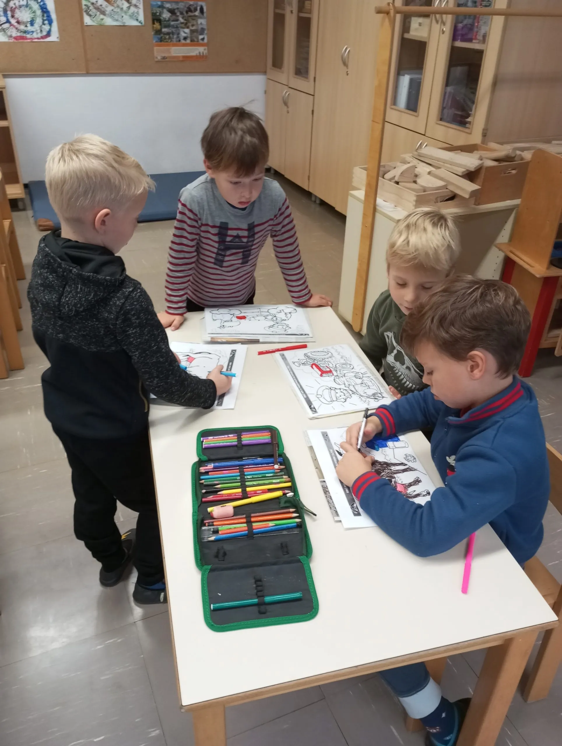 Učenci prvega razreda so v jutranjem varstvo barvali pobarvanke na temo tradicionalnega slovenskega zajtrka.