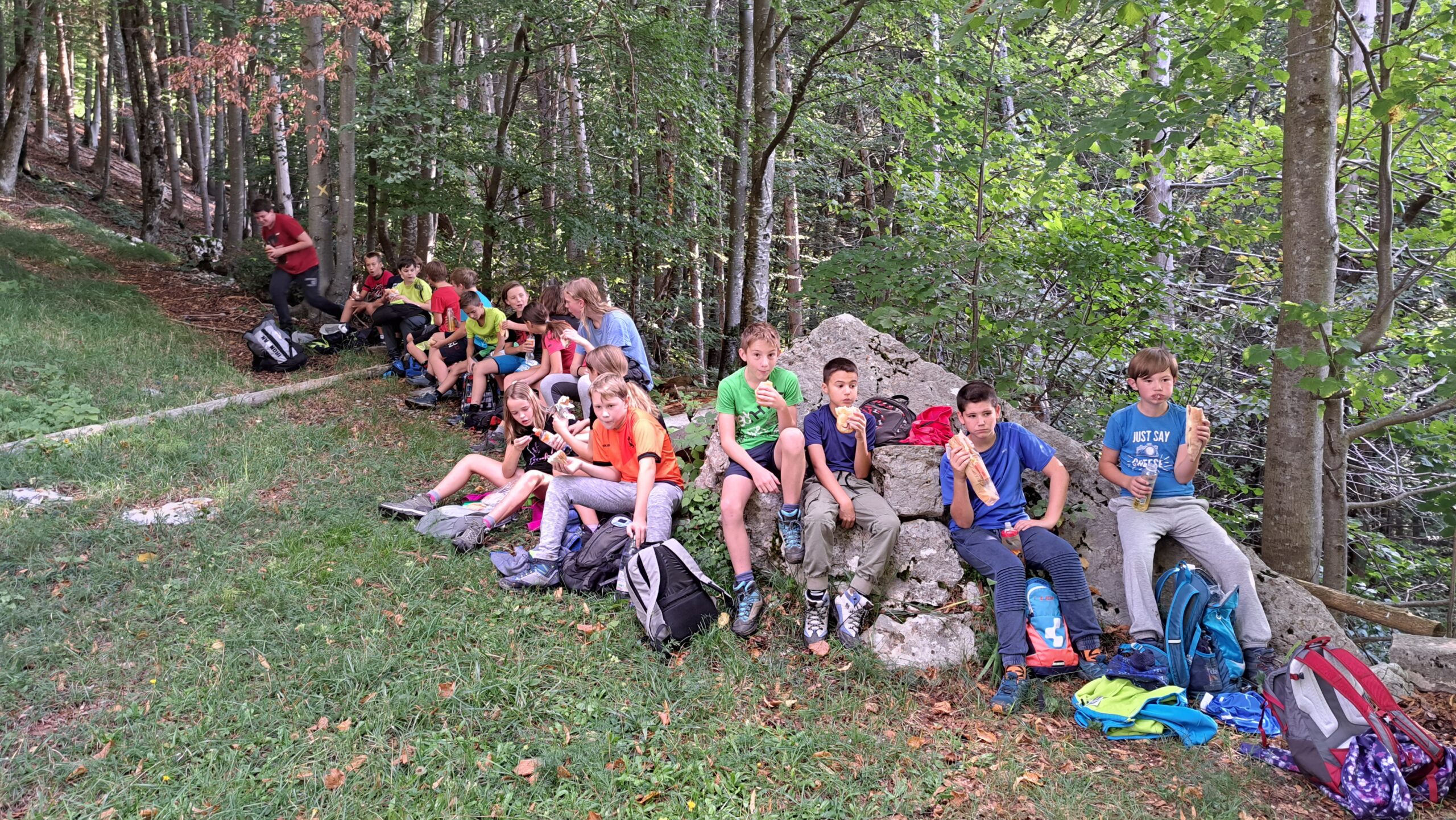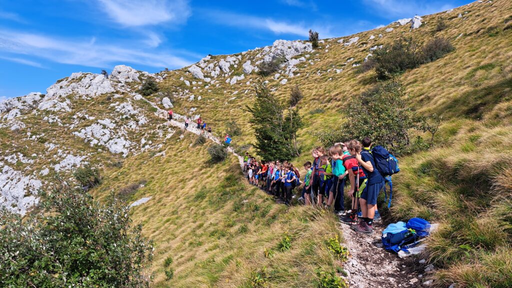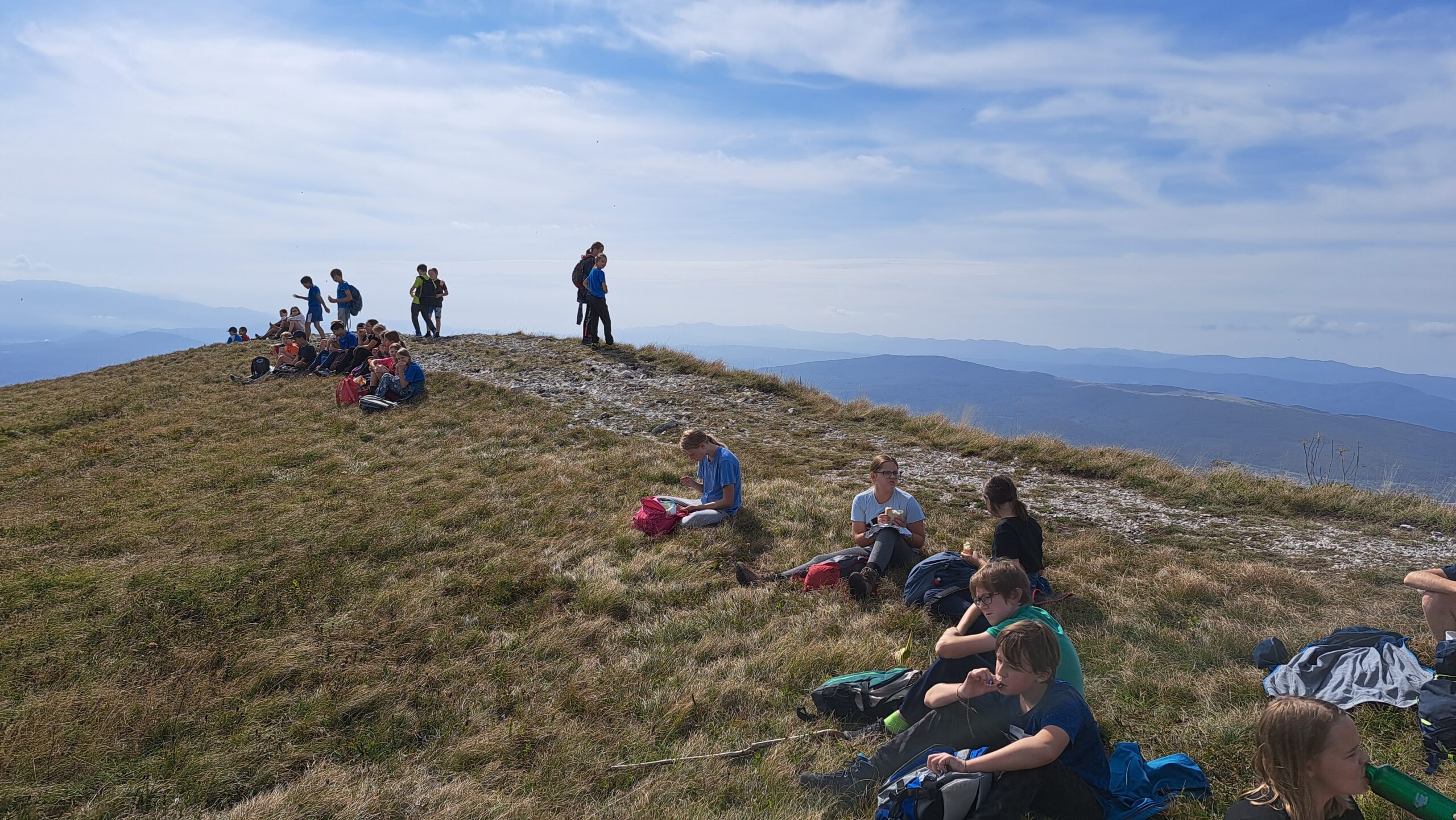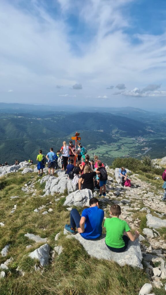 Šestošolci in sedmošolci so se polni energije danes odpravili na pohod v sredogorje. Naš cilj je bil Nanos, ki leži 1.240 metrov nad morjem. Pohod smo začeli v kraju Strane. Vztrajno smo zagrizli v hrib, ki je bil na začetku nekoliko strmejši. Ko pa se je ta polegel, smo lažje dihali in bili tudi veliko bolj zgovornejši. Teme pogovorov so bile računalniške igrice, telefoni, motorji, traktorji… A ko smo prišli na vrh Nanosa, se je to spremenilo v navdušenje nad razgledom. Ker je bilo vreme čudovito, smo se posedli kar po travi na vrhu in se okrepčali z malico iz nahrbtnika.