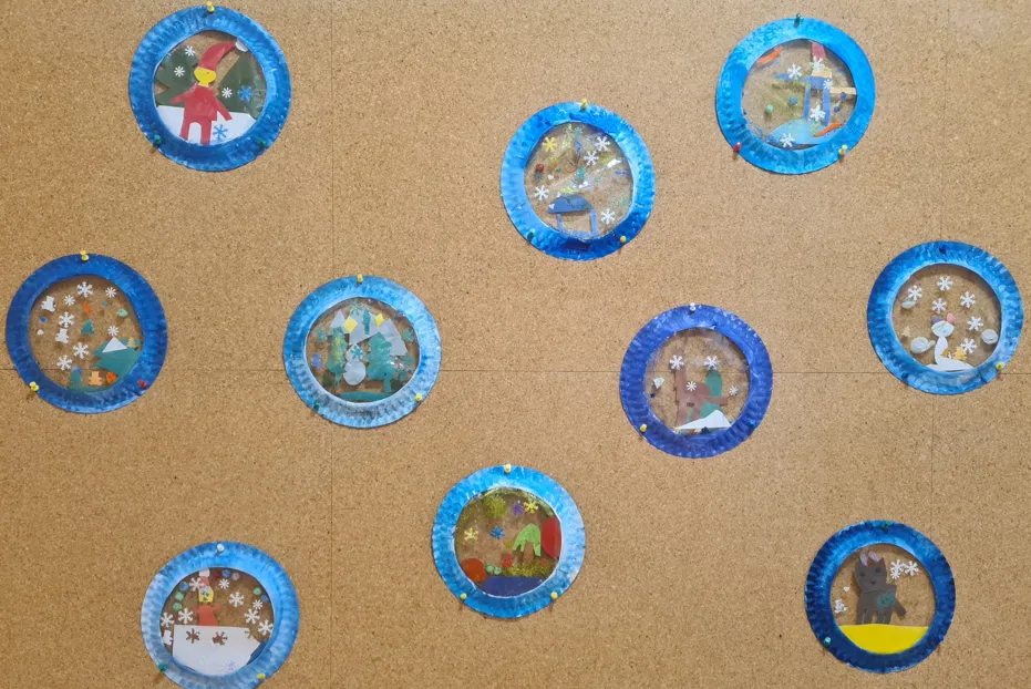 Z drugošolci smo z veseljem pozdravili zimski in zasnežen december. Košček zime nam je uspelo tudi uloviti v snežne krogle.