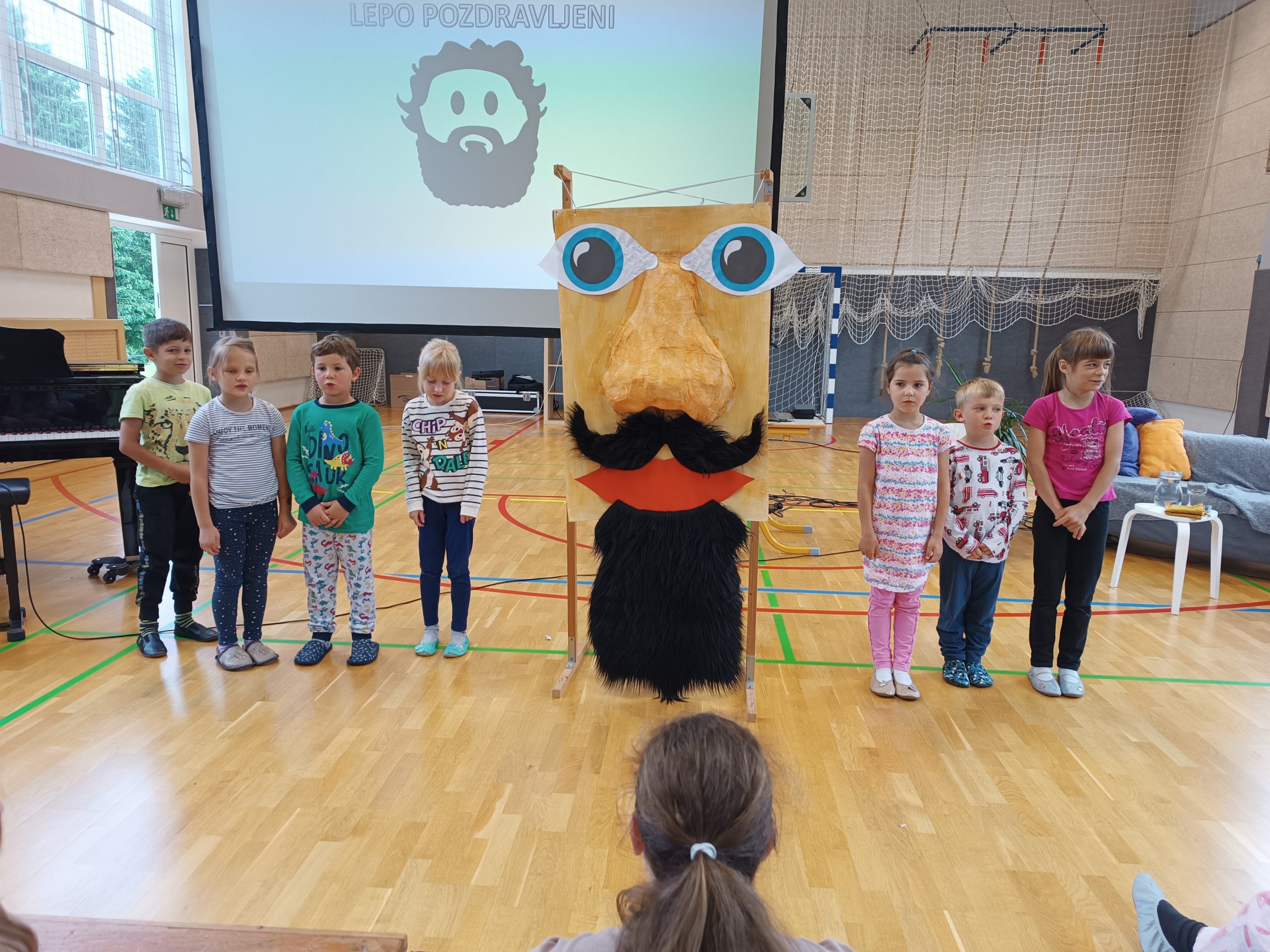 Na tem mestu izrekam velik hvala našemu voditelju in povezovalcu programa, Tobiji Čuku, prvošolcem, ki so se pogumno predstavili pred številnim občinstvom z igrano deklamacijo pesmi Kdo se skriva očku v bradi?, pevskemu zboru za super izvedbo prej omenjene slikanice v verzih in učencem, ki so Pižamo poustvarili v obliki glinenega kipca. Gost je bil navdušen in najbolj všečnega si je izbral za spomin, ki ga bo, ko bo ta posušen in zapečen, prejel po pošti. Bravo, avtorica Nuša Čuk!