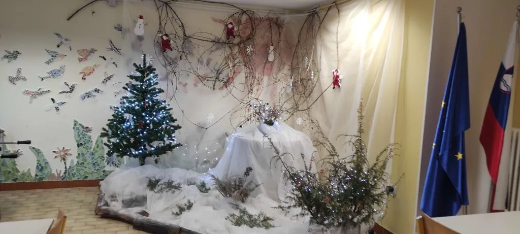 Na Miklavževo popoldne je v šolski avli nastala čipkasta pravljica. Drobni klekljani novoletni okraski učencev Čipkarske šole Idrija, oddelek Črni Vrh, bodo do praznikov lepšali decembrske šolske dneve.