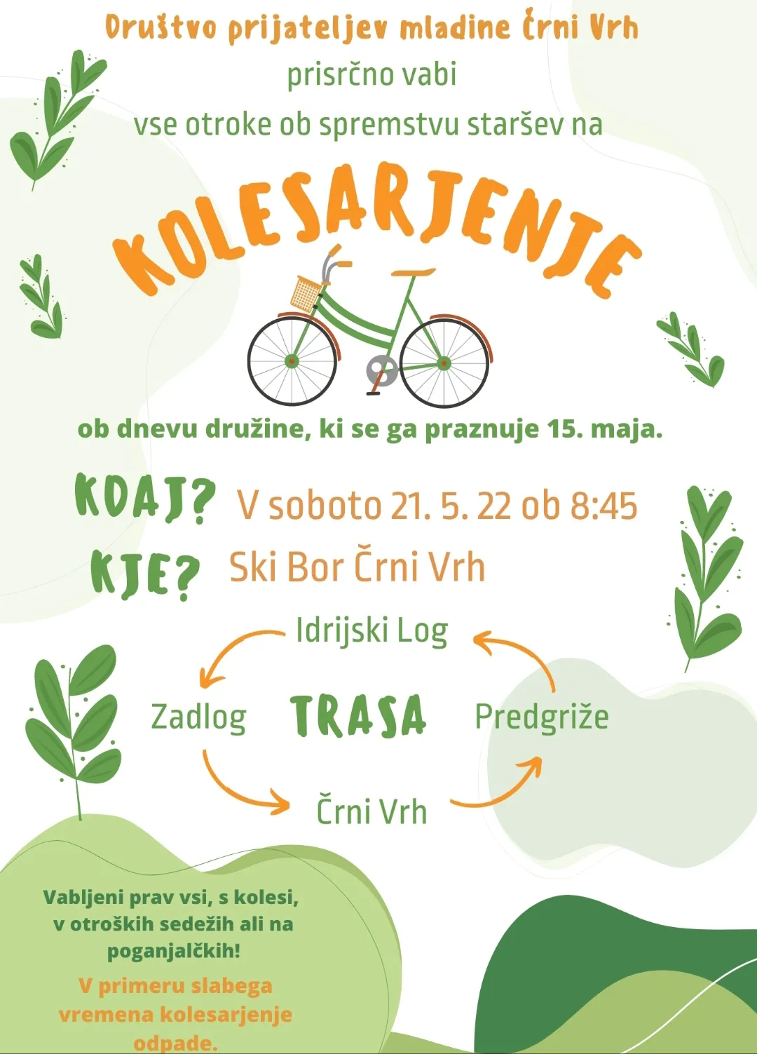 Društvo prijateljev mladine Črni Vrh vabi na kolesarjenje.