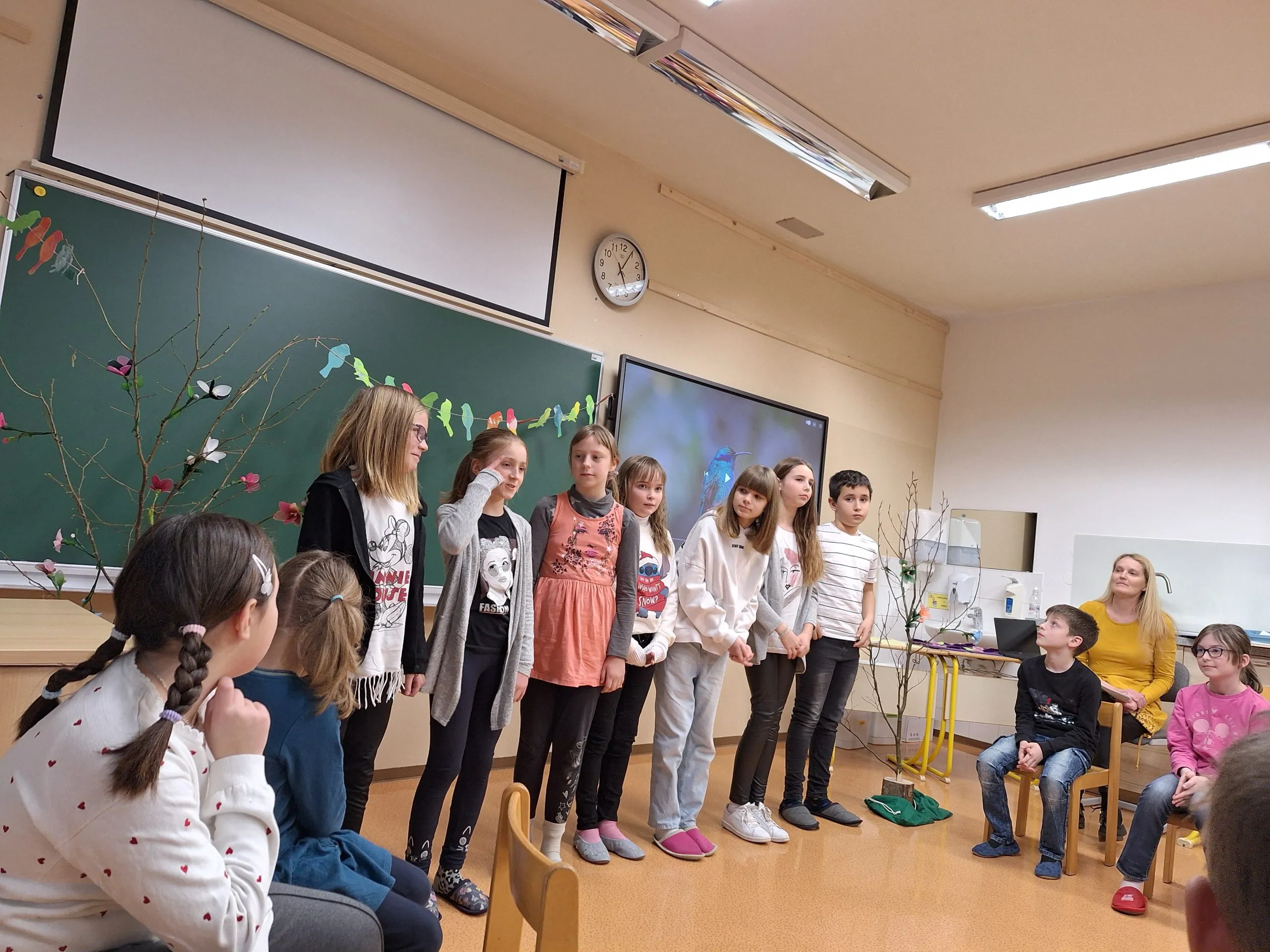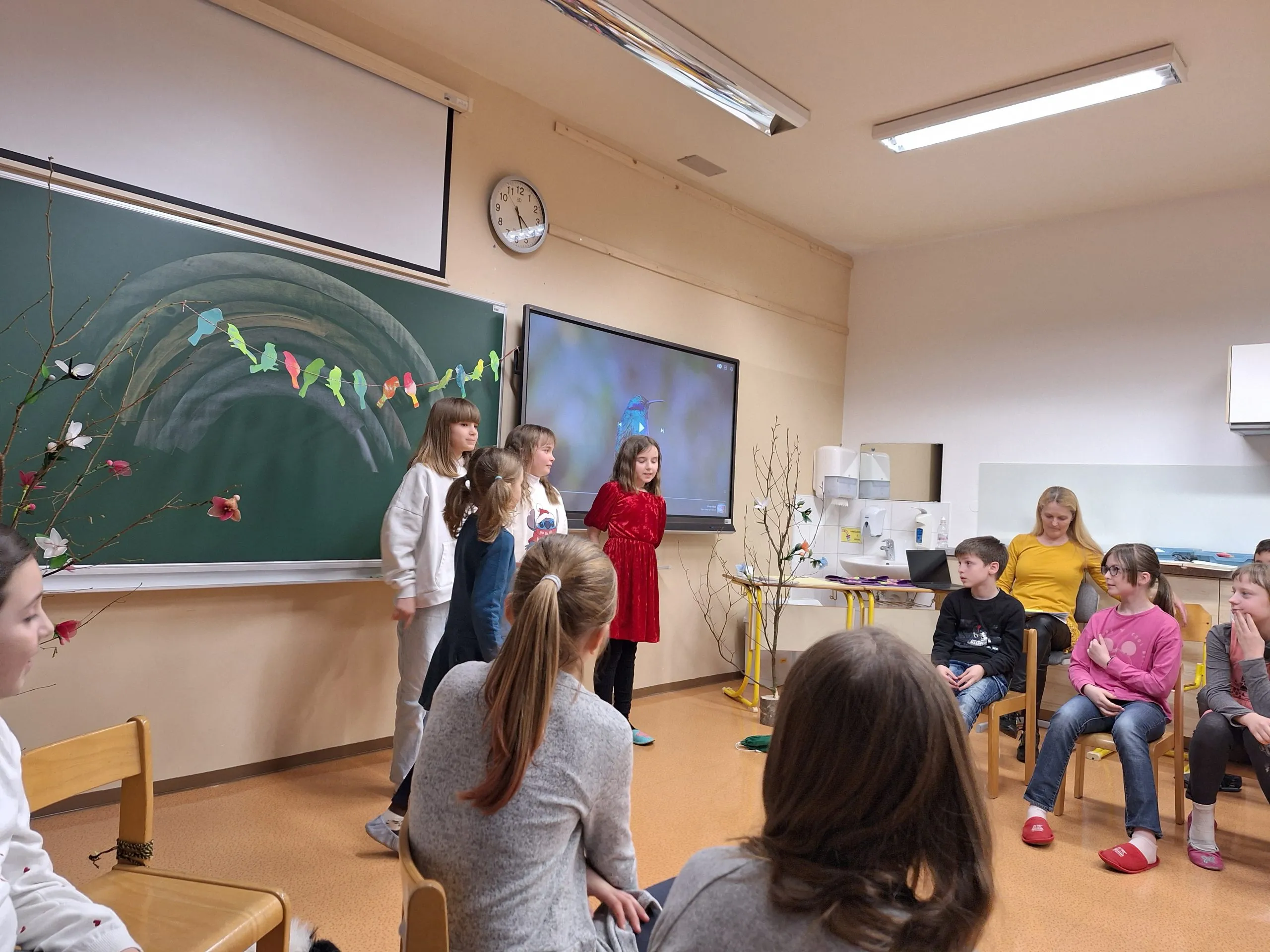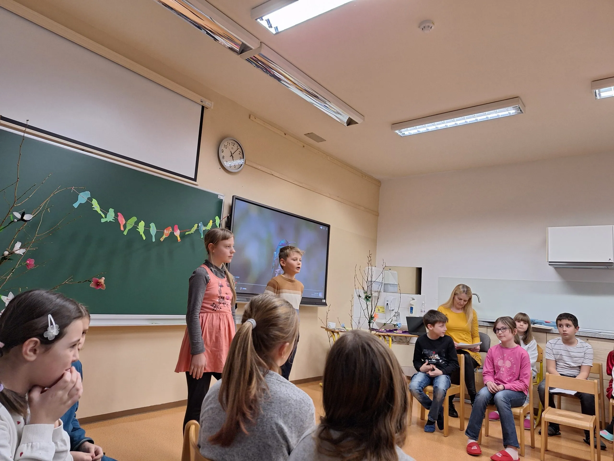 Četrtošolci so na valentinovo svoje starše obdarili z nastopom. Povabili so jih v šolo in jih s svojim programom popeljali skozi naravoslovje, glasbo in slovenščino. V marsičem so tudi preizkusili svoje starše. Npr.: naštevanju čutil, prepoznavanju predmetov s tipom ali pa risanjem mavrice na tablo. Za konec prireditve so jih popeljali v svet pravljic, ki jih ni nikoli preveč in so večne ter jih obdarili z darilom, ki so ga izdelali sami.