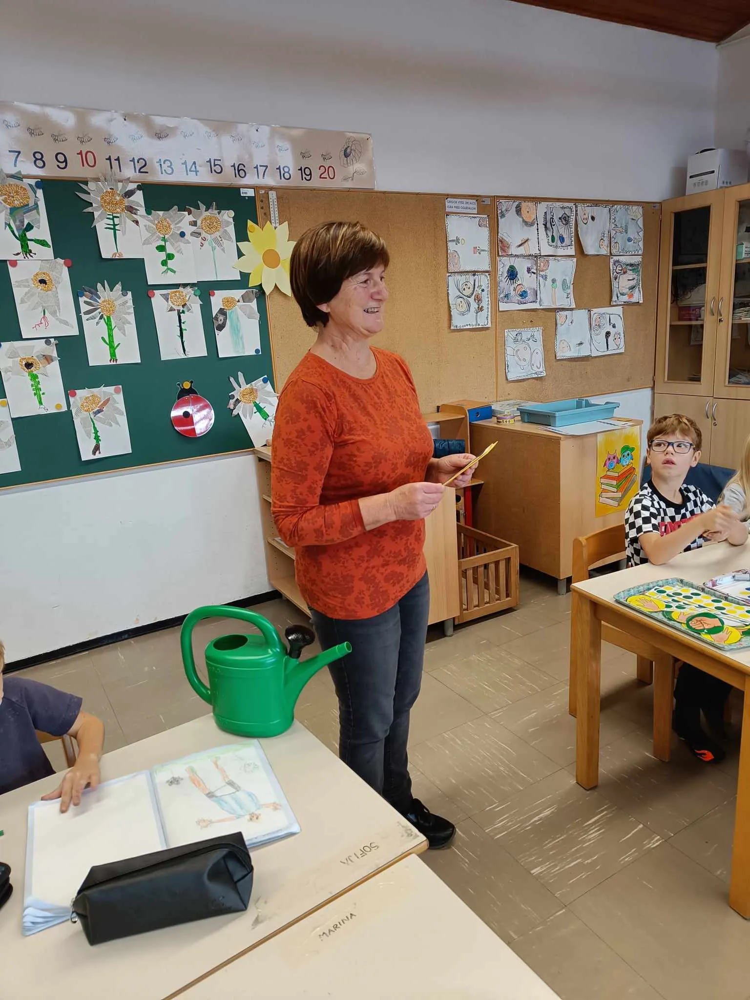 Učenci prvega razreda smo imeli danes, 9. 11. 2023, prav poseben obisk. Obiskala nas je bivša učiteljica Martina Habe. Svoje veselje do vrtnarjenja in gojenja kulturnih rastlin je v kratkem druženju delila z nami.