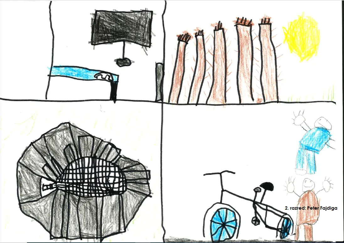 Učenci od 1. do 5. razreda so sodelovali tako, da so narisali sliko na dano temo. Prvi trije iz vsakega razreda so bili nagrajeni, njihove umetnine pa so razstavljene v vitrini na trgu.