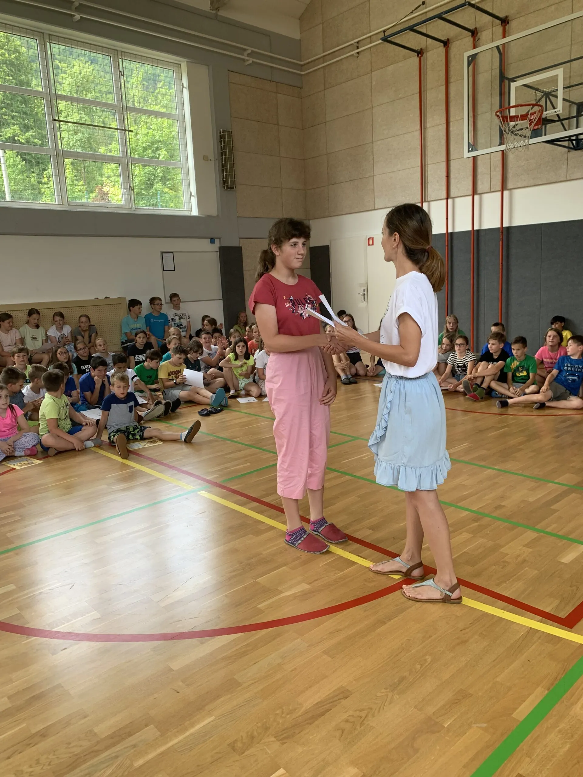 V OŠ Črni Vrh se vsako leto veliko število učencev odzove in priključi omenjenemu gibanju. Letos smo zaključek Bralne značke obeležili na drugačen način. Zbrali smo se v telovadnici, kjer smo mentorice učencem podelile priznanja ob zaključku branja. Pridružilo se jim je tudi 8 mam, ki so med letom z bralnega seznama, objavljenega na spletni strani, izbrale vsaj 4 knjige in jih prebrale ter o njih napisale misel ali dve. Tako so danes poleg 96 učencev tudi one prejele priznanje in s tem pokazale, da so same najboljši zgled svojim otrokom in da jih tudi s pomočjo knjig vzgajajo v misleča, čuteča in sočloveku prijazna bitja.