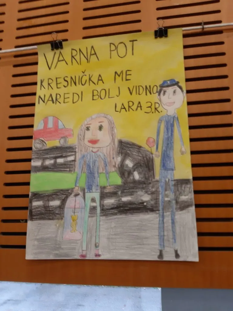 Lara Ozbič, učenka 3. razreda je bila nagrajena za likovno delo Varno na poti v šolo in domov. V avli Goriške knjižnice Franceta Bevka v Novi Gorici je v torek, 5. decembra 2023 potekala zaključna prireditev likovnega natečaja in preventivne akcije Varno na poti v šolo in domov, ki jo je Policijska uprava Nova Gorica tudi letos izvedla za učence 3. razredov severnoprimorskih osnovnih šol. Cilj natečaja je predvsem izobraževanje otrok za varno hojo in udeležbo v cestnem prometu.