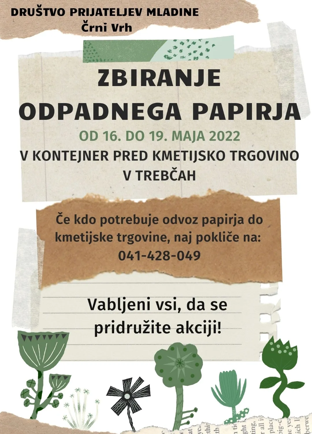 Društvo prijateljev mladine Črni Vrh vabi k zbiranju papirja.