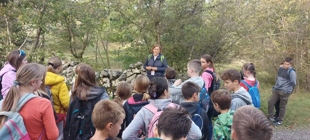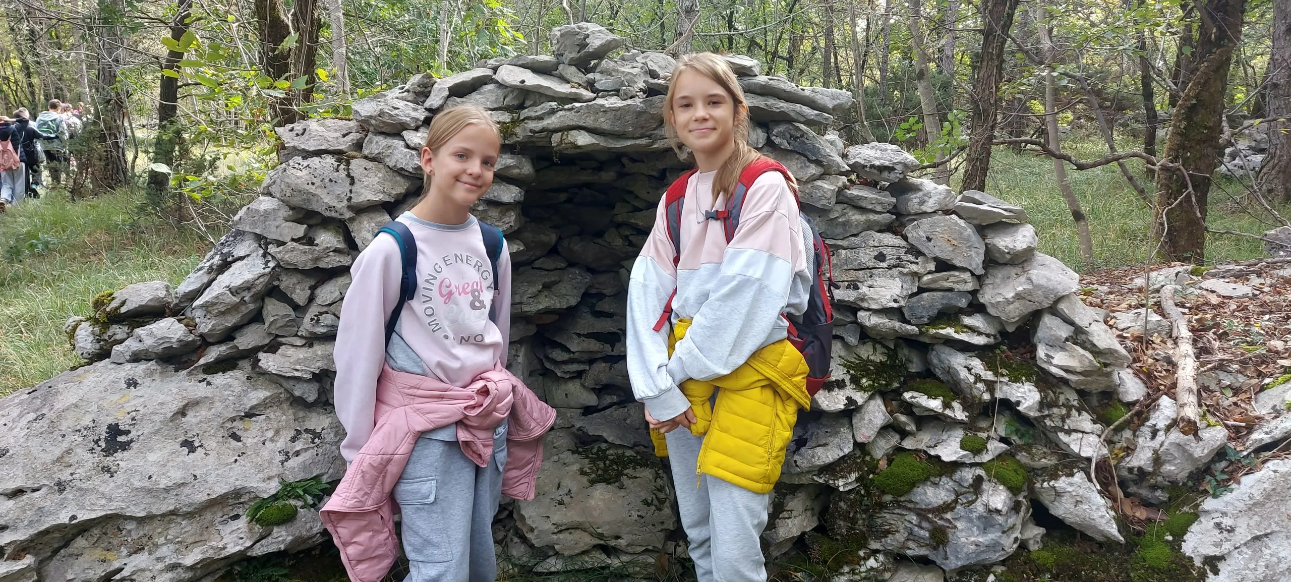 V četrtek, 9. 10. 2025, so se učenci 6. in 7. razreda odpravili na potep po kraški planoti. Pri Lipici jih je pričakala vodička Breda, ki jih je popeljala skozi Živi muzej Krasa. Učencem in učenkam je v živo predstavila kraške pojave kar na primerih, ki so jih našli v naravi okoli sebe. Prav tako pa so spoznali, kako so se ljudje na kraški planoti znašli in preživeli v tako posebnem okolju. Videli so pastirske koče za otroke, formo vivo, suhe zidove in spoznavali življenje ljudi in naravo v lepoti kraške pokrajine.