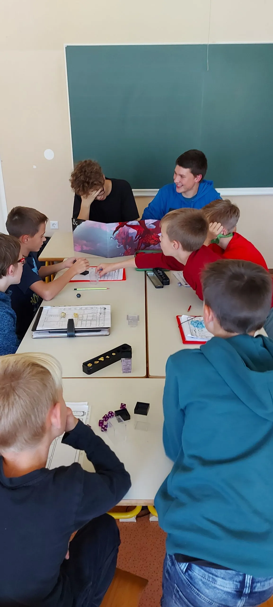Na šoli smo pri krožku Dungeons & Dragons gostili bivša učenca, ki sta za eno srečanje zopet prevzela vajeti zmajskih uzd in še enkrat varno vodila učence in učenke pri skozi del njihove pustolovščine.